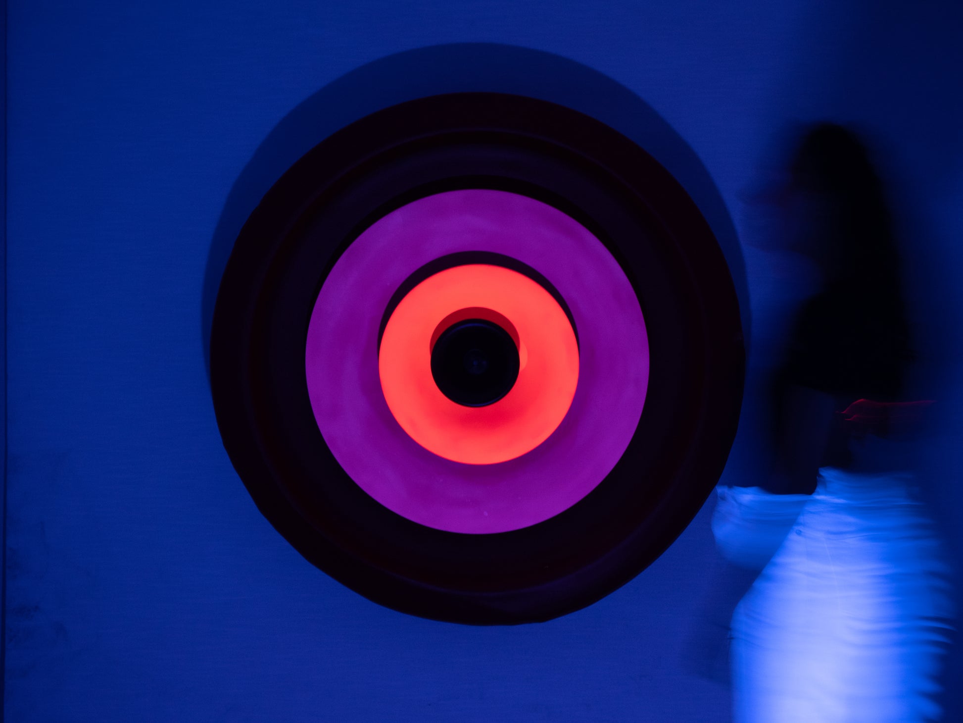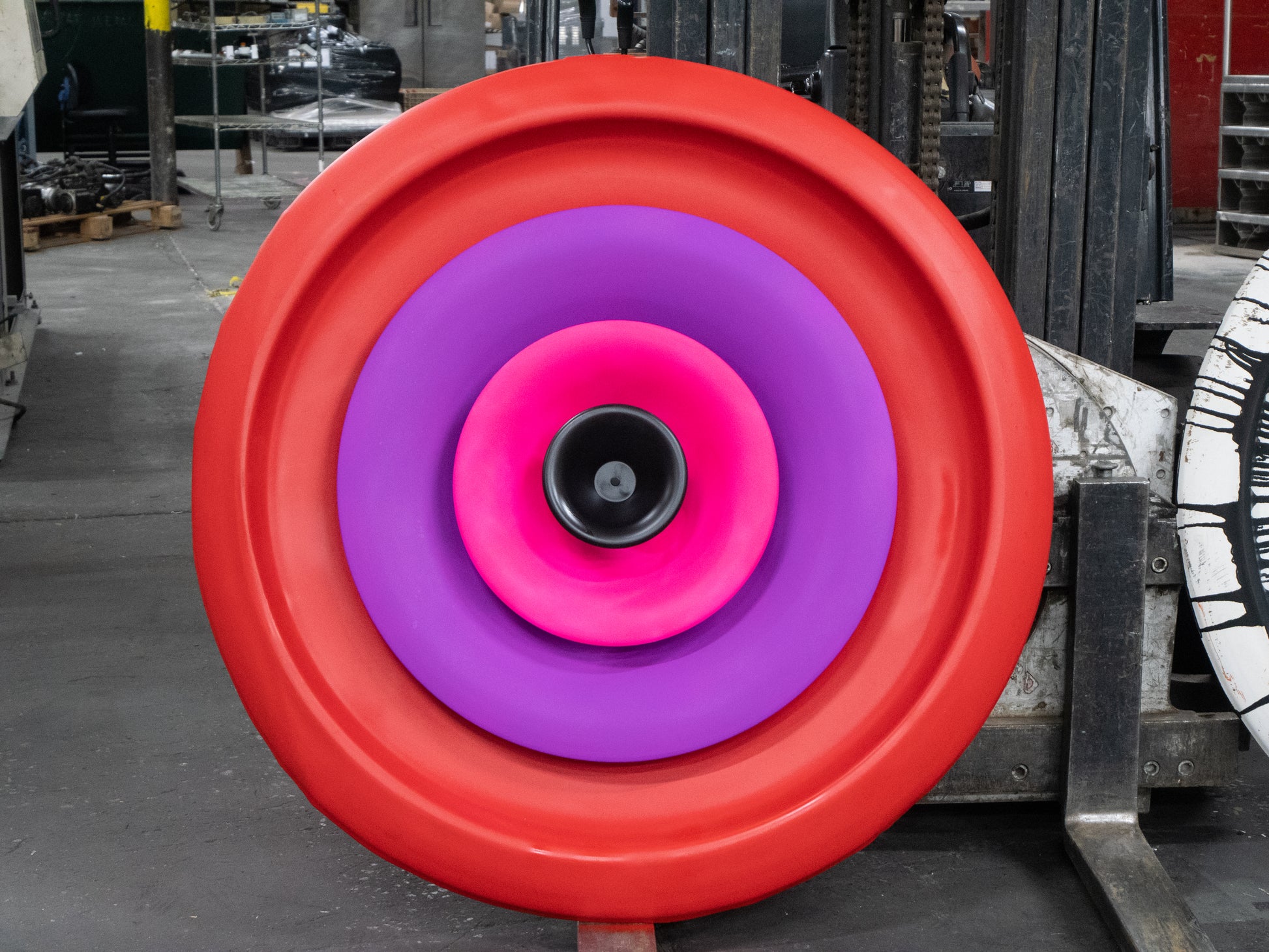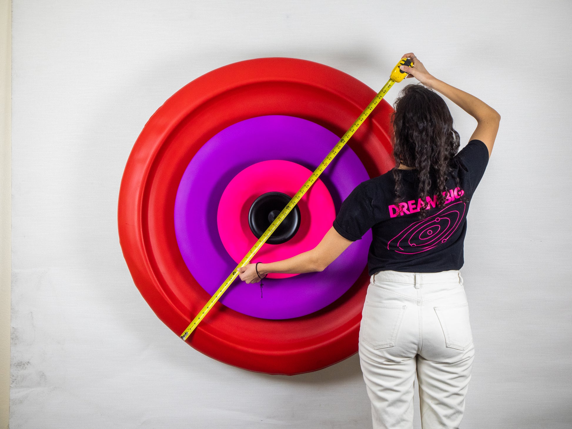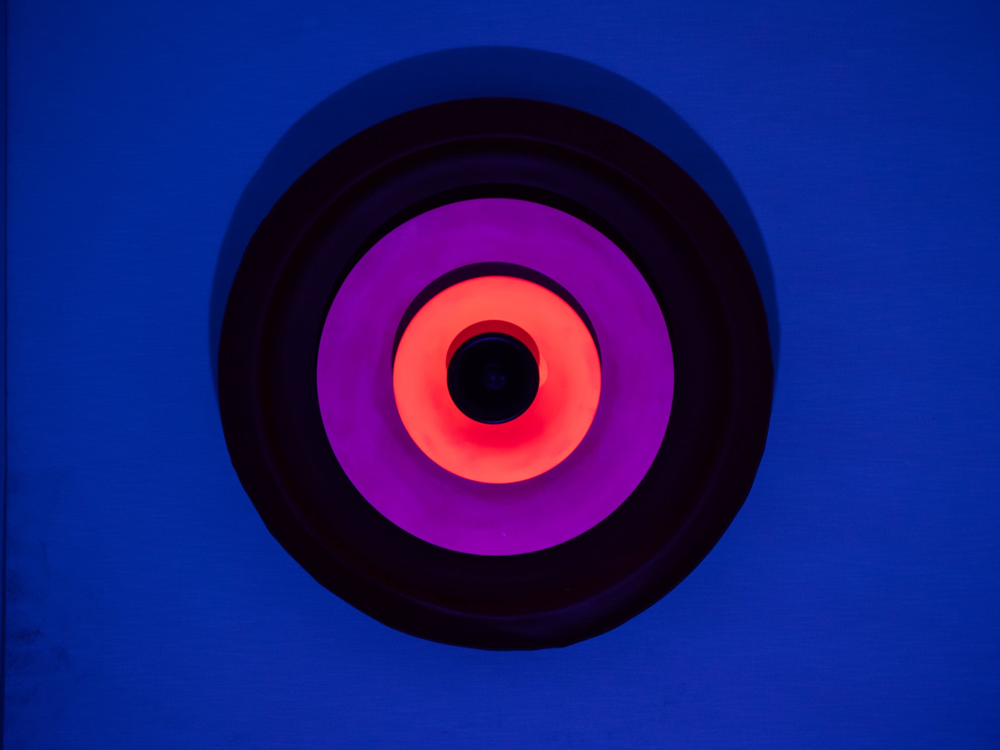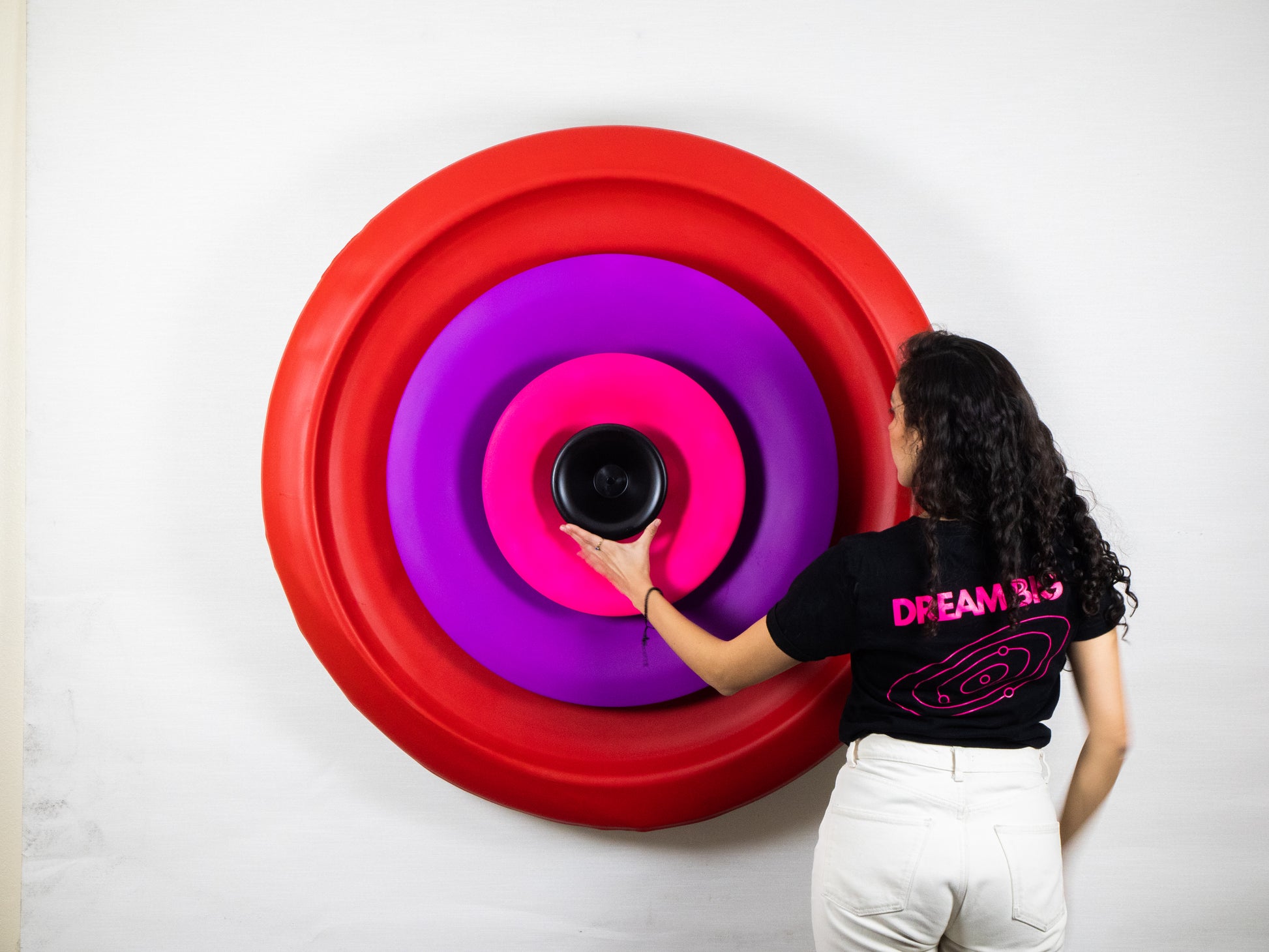 A circular marvel, crafted from a vintage air vent and adorned with radiant colors, embodying both sustainability and industrial aesthetics, seamlessly merging form and function to create a captivating symbol of Sustainable Industrial Art