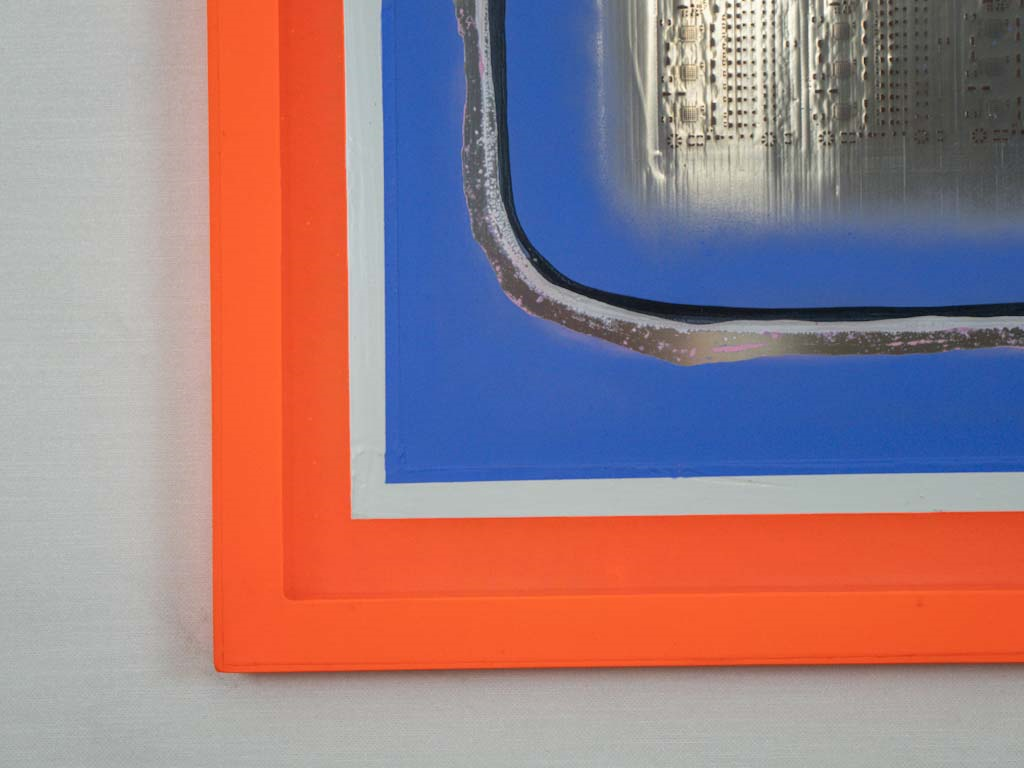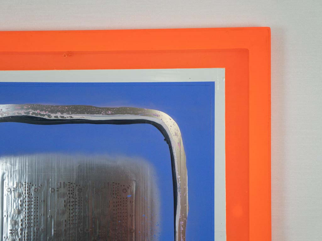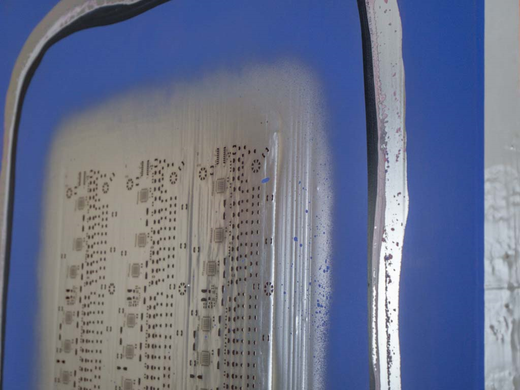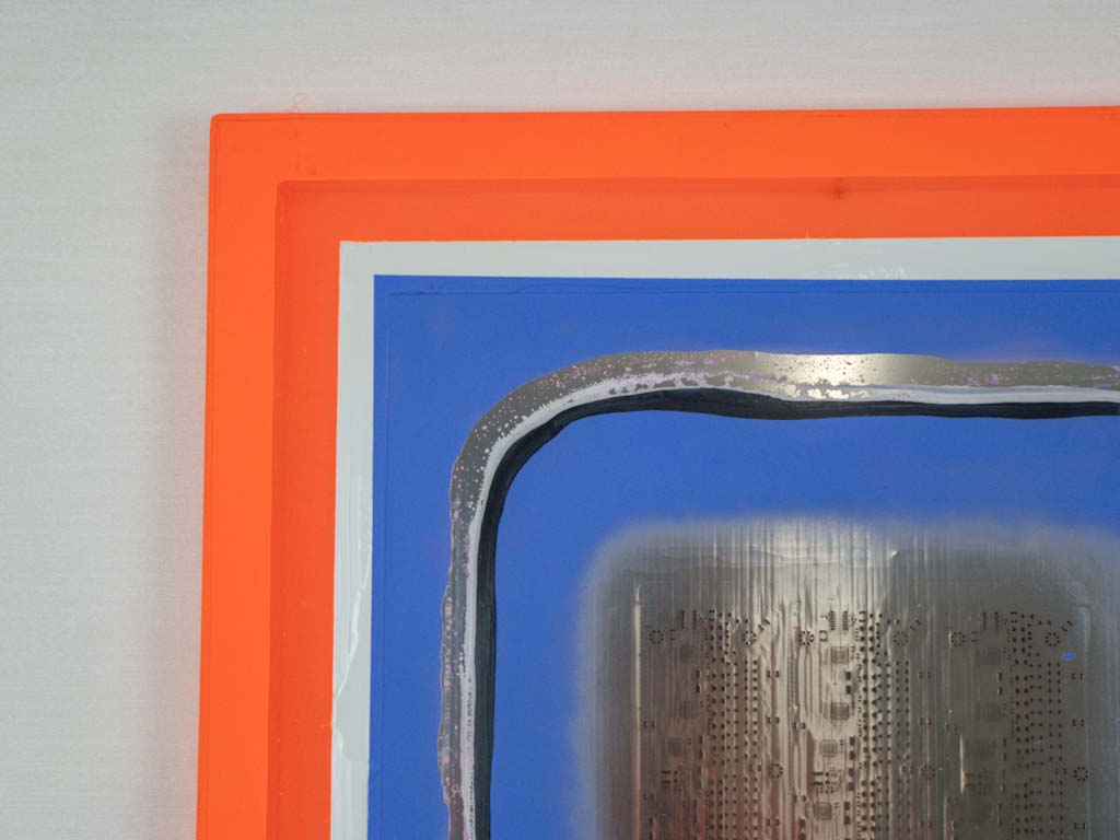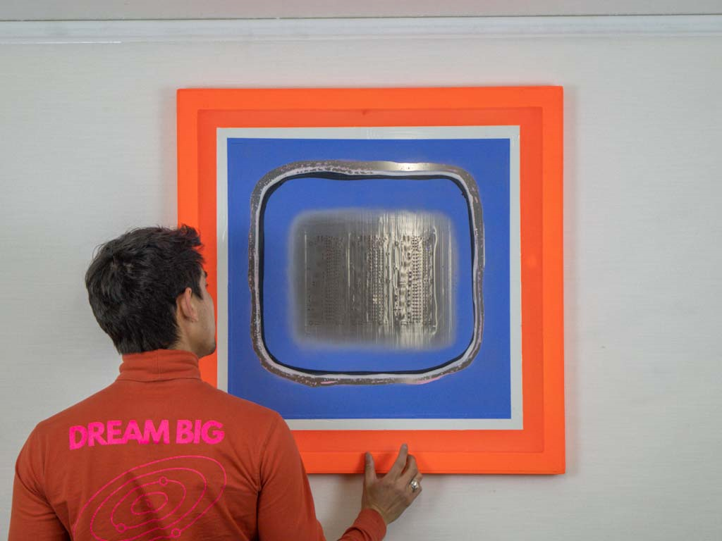 An aluminum SMT technology stencil adorned with LED lights, transforming any space it inhabits into a dynamic canvas of light and form. Its interactive design responds to the nuances of the environment, inviting viewers to engage with its ever-evolving symphony of illumination